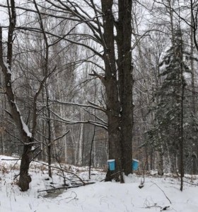 Sap buckets on trees on my brother’s land near Rose City.